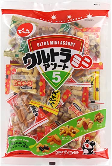 - A convenient assortment of small bags containing persimmon pika, mixed nuts, salty flavor, grainy cheese & black pepper beans, and shrimp seaweed. You can enjoy 5 flavors.