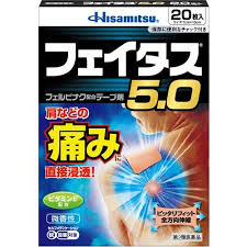 Feitas 5.0/Joint pain, stiff shoulders, lower back pain, muscle pain/Brand: Feitas/[Distributor, manufacturer, importer or seller] Hisamitsu Pharmaceutical/[Product details of Feitas 5.0] ● A transdermal analgesic and anti-inflammatory tape containing 5.0% of the active ingredient felbinac. ● Excellent effect on shoulder, lower back, joint and muscle pain. ● Contains vitamin E to promote blood circulation in the affected area. ● Contains 3.5% l-menthol for a refreshing cool feeling. ● Lightly scented, so it won't bother you when you sleep or in public. ● Stretches in all directions, fitting perfectly to the skin. ● Comes with a zipper for easy storage. /cate15138