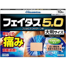 Feitas 5.0 Large Size/Joint pain, stiff shoulders, lower back pain, muscle pain/Brand: Feitas/[Distributor, manufacturer, importer or seller] Hisamitsu Pharmaceutical/[Product details of Feitas 5.0 Large Size] ● A transdermal analgesic and anti-inflammatory tape containing 5.0% of the active ingredient felbinac. ● Excellent effect on shoulder, lower back, joint and muscle pain. ● Vitamin E promotes blood circulation in the affected area. ● Contains 3.5% l-menthol for a refreshing cool feeling. ● Lightly scented, so it doesn't bother you when you sleep or in public. ● Stretches in all directions, fitting perfectly to the skin. ● Large size that can cover large areas such as the lower back with one piece. ● Comes with a zipper for convenient storage. /cate15138