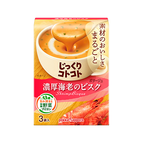 A rich and creamy shrimp bisque that is full of shrimp flavor. With the deep, luxurious flavor and smooth texture of shrimp, you can enjoy the full flavor of the ingredients. The secret to its richness is the special vegetable bouillon that also uses onions and cabbage cores.